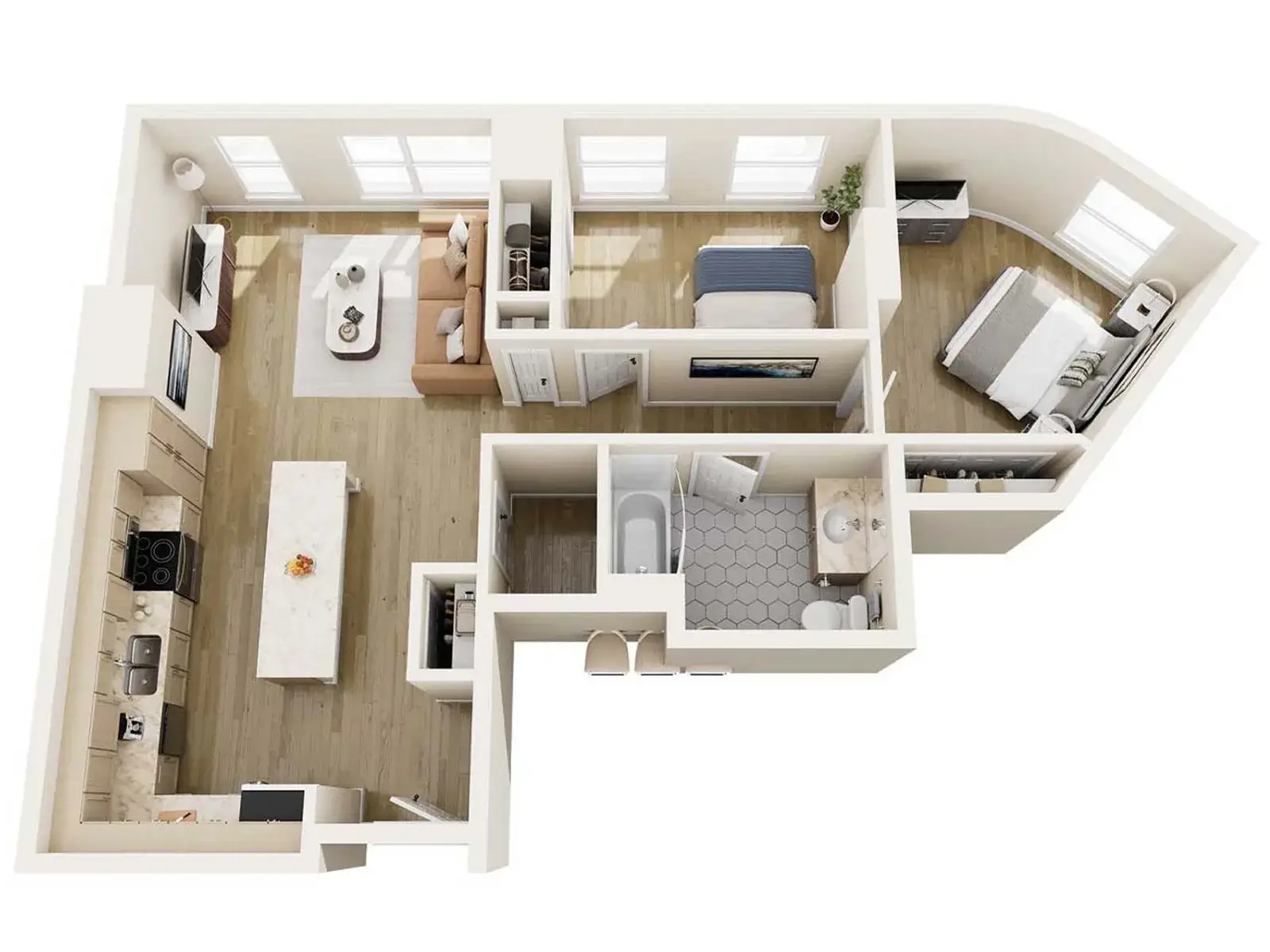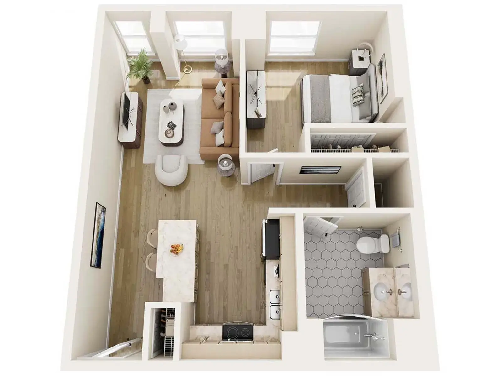 Skye Apartments offers thoughtfully designed floor plans to suit your lifestyle. Each apartment features contemporary finishes, open-concept layouts, and floor-to-ceiling windows that frame breathtaking views of the Philadelphia skyline. Experience the balance of modern design and timeless comfort — a home that’s as inspiring as the city itself.